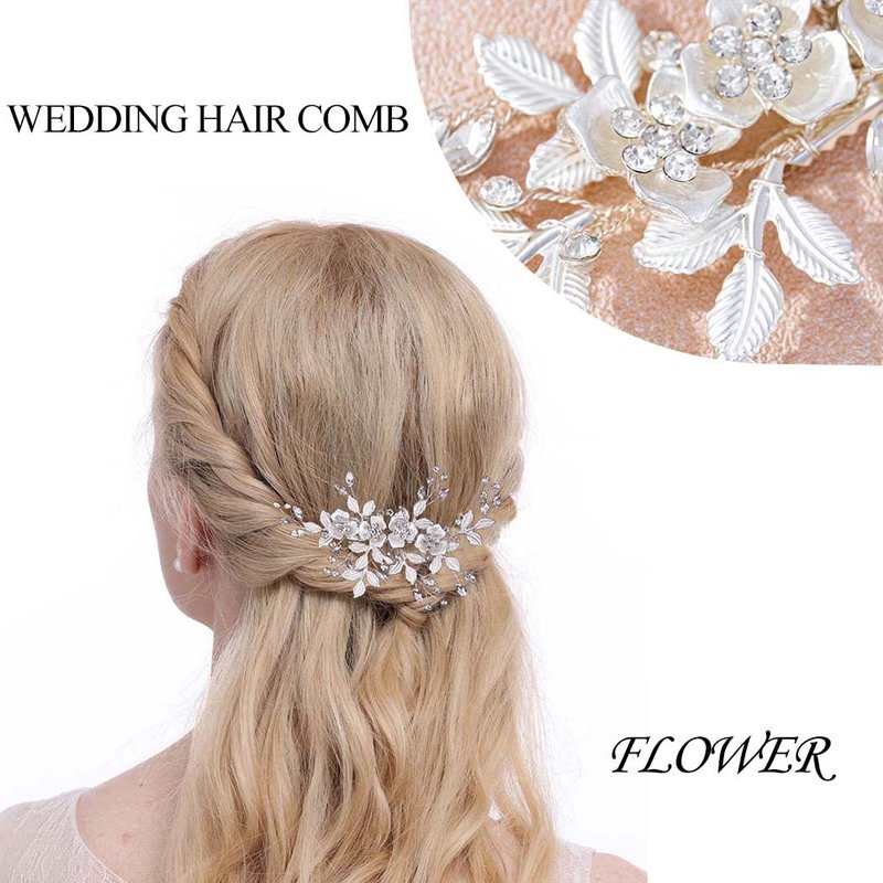 - Flower bride wedding hair comb is designed with flowers and leaves,and the flowers are inlaid with rhinestones, which can shine in the crowd.