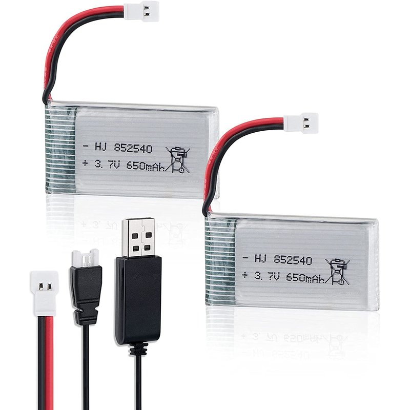 FPVERA 2PCS Drone Batteries 3.7V Lipo Battery USB Charger and 650mAh Lipo Battery with Battery Charger for SYMA X5 Serial UAV Drone Quadcopter Rechargeable Battery