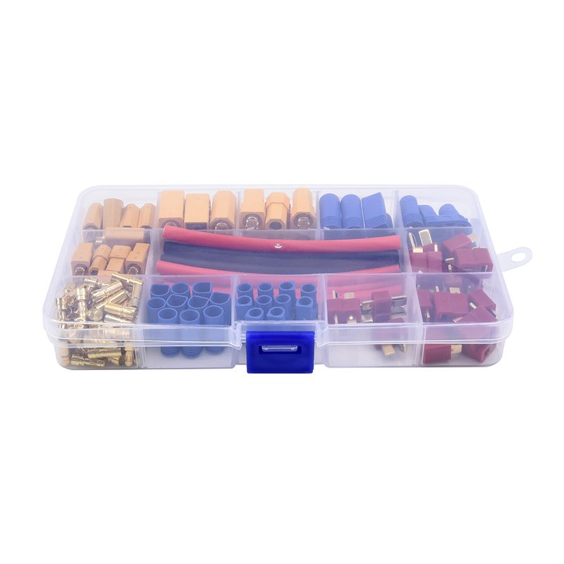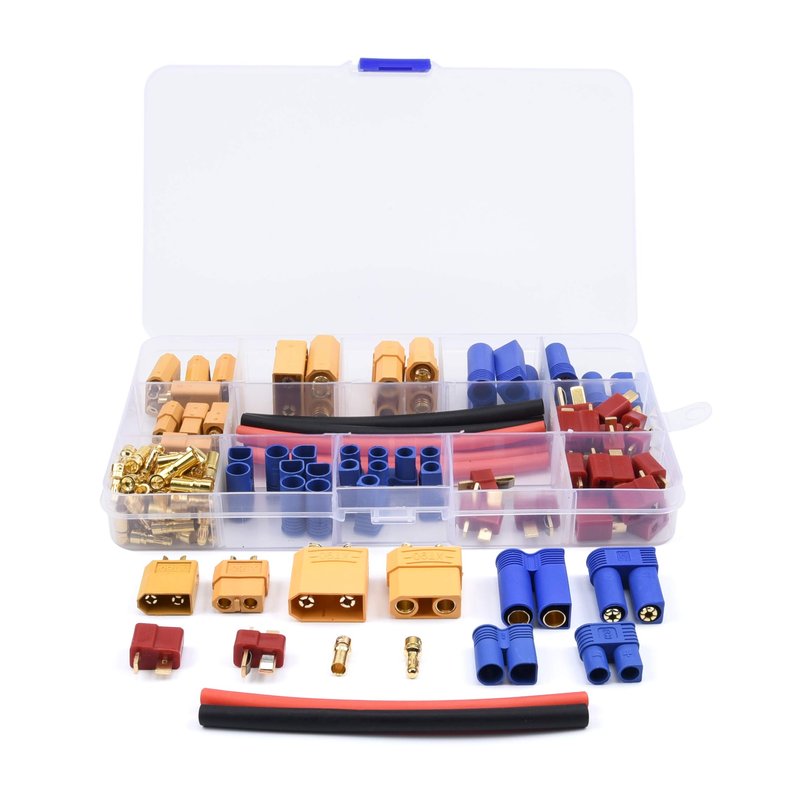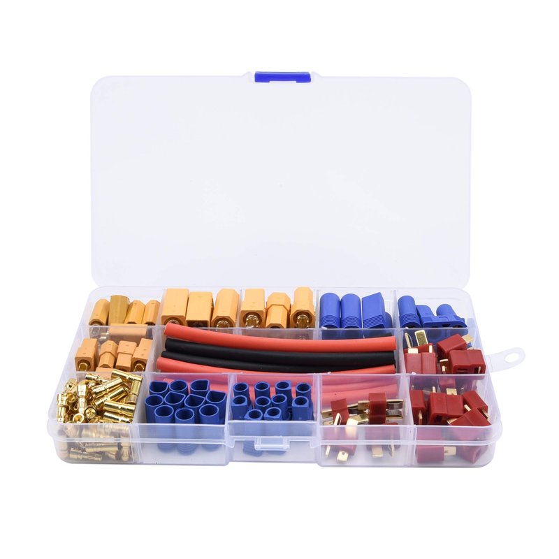 - 【Package Content】: XT90 * 3 pairs, EC5 * 3 pairs, XT60 * 5 pairs, EC3 * 5 pairs, T plug * 10 pairs, 3.5mmm banana plug * 20 pairs, Heat shrink tube * 10 pcs. Totally 102 pcs.