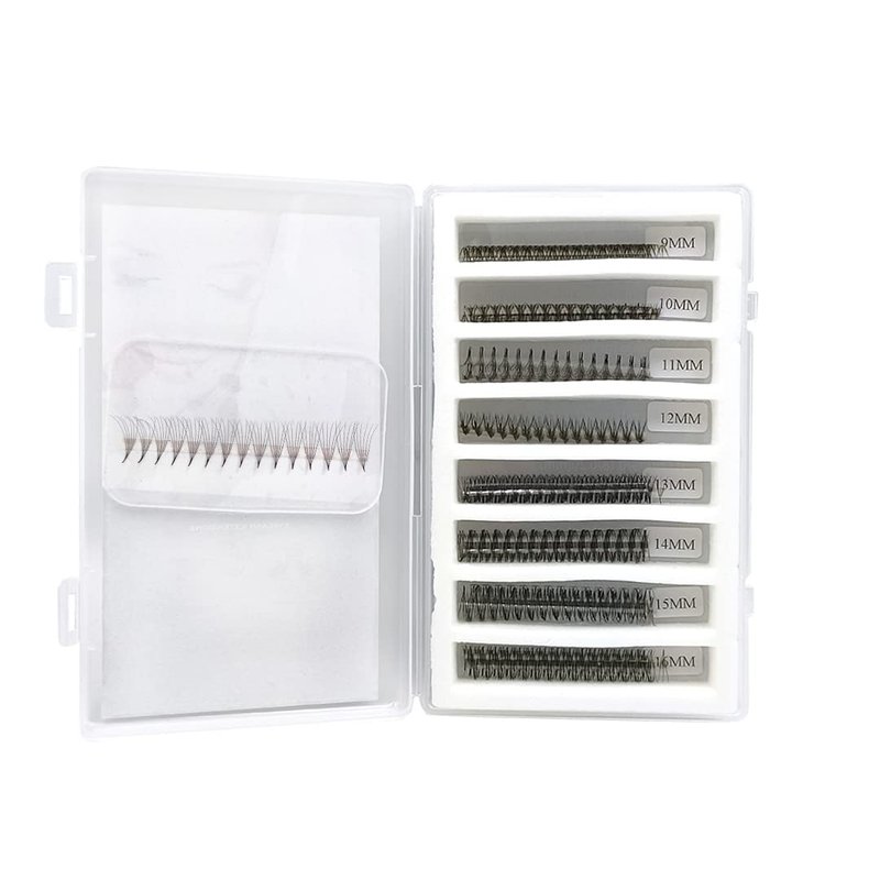 Premade fans eyelash extensions, 1000 fans per box, from 9mm to 16mm length, with C or D curl, 0.07/0.10mm thickness. This is a premade fan collection. The premade lash fans are soft and natural, made from pbt high grade material, very light after wear. With glue bonded and not easy to fall apart. c curl or d curl lash extensions premade fans give volume effects suitable for not only the lash beginner but lash artists. Our promade fans collection with a silicone pad for each box, very easy to place the lashes since the adsorbability.