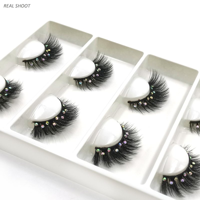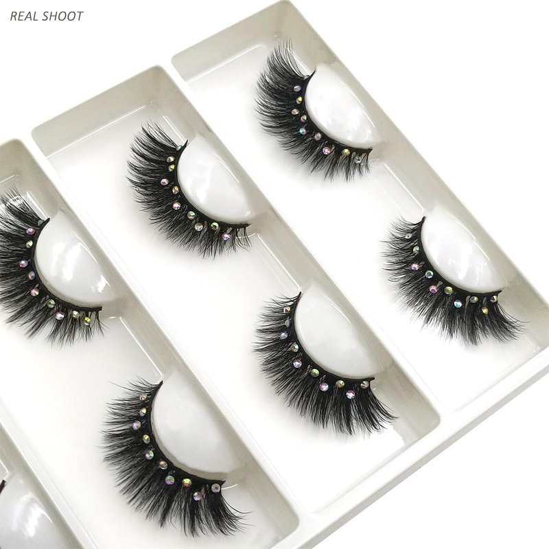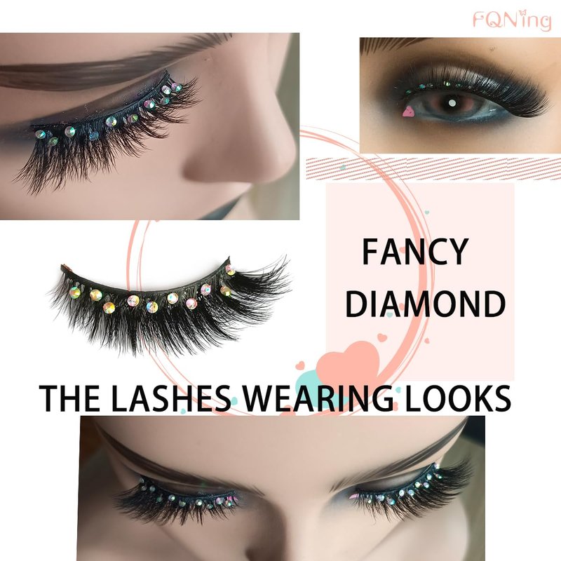 faux mink eyelashes with tiny jewels rhinestone on them, luxury looks suitable for party, dance, stage, festival, celebration, etc.