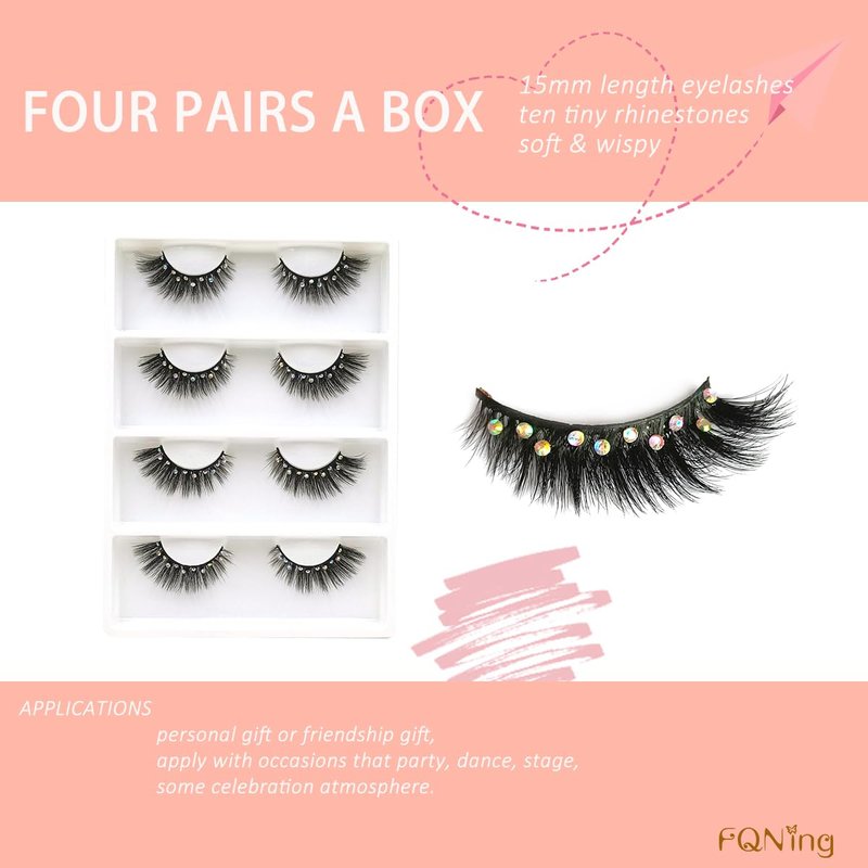 FQNing sparkle mink lashes with jewels, glamorous glitter rhinestone cat-eye eyelashes 4 pairs (Fancy Diamond)