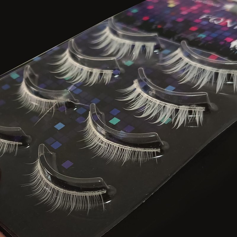 This is a box of white eyelashes with upper and lower set, which is suitable for Party, Cosplay, Masquerade