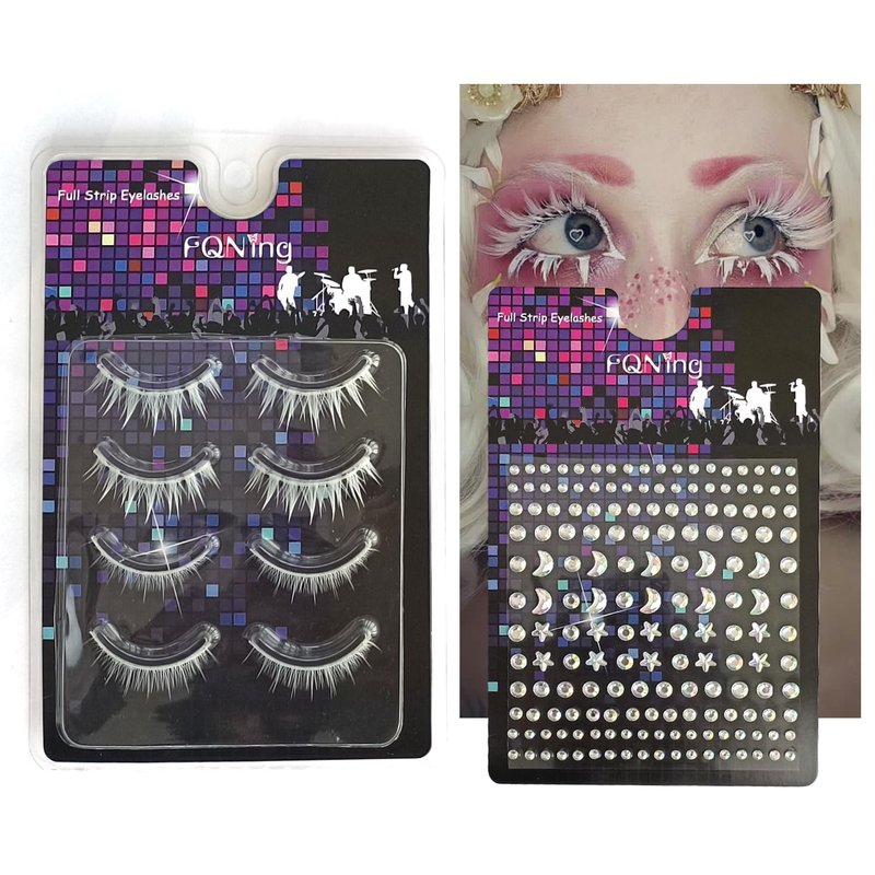 FQNing White False Eyelashes Upper and Lower Lashes Set for Party, Cosplay, Masquerade (Comic white)