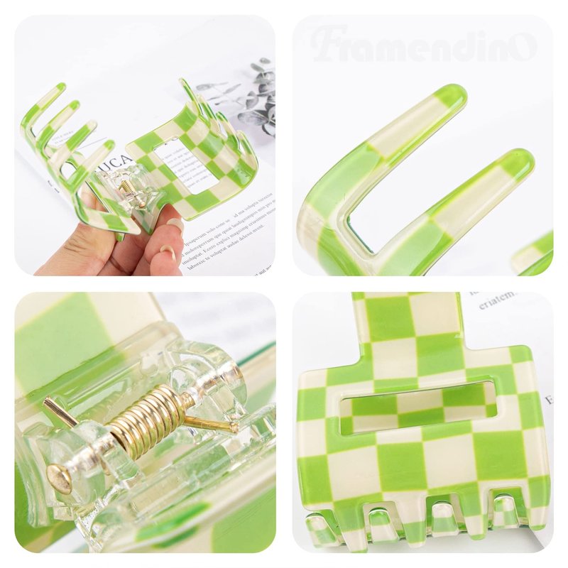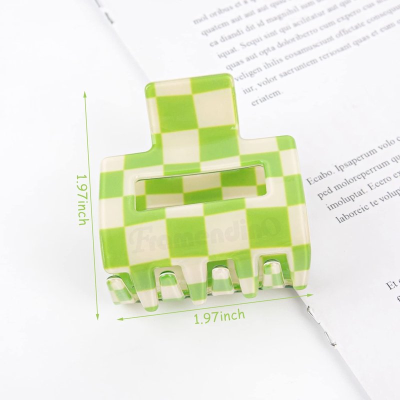 Framendino, 4 Pack Checkered Hair Claw Clips 2" Square Checker Barrettes Medium Cute Hair Jaw Clips Hair Accessories for Women