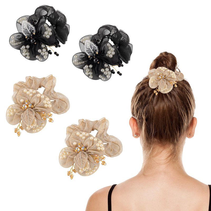 Framendino, 4 Pack Mesh Flower Elastic Scrunchies Flower Leaf Elastic Hair Ties Ponytail Holders Hair Scrunchies Hair Rubber Bands Ropes Hair Accessories