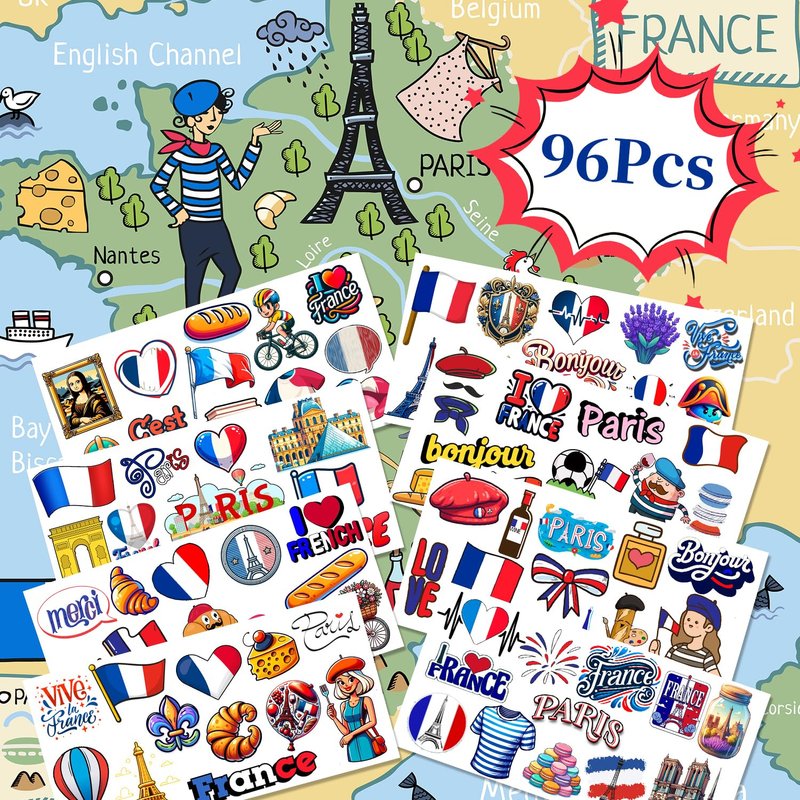 - 4 - Versatile Decorations in French Theme - You can also use these french party decorations tattoos to decorate various items, stick them on mugs, glasses, building blocks, sports water bottles, laptops, phone cases, and suitcases. Perfect for french themed party, they can be used as france party favors, or used in french class, sparking children's interest in france culture.