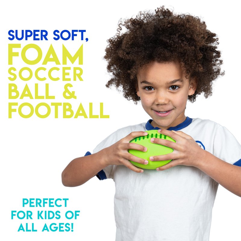 - TWO SPORT PACK: This set comes complete with (2) foam sports balls: (1) mini football, and (1) mini soccer ball