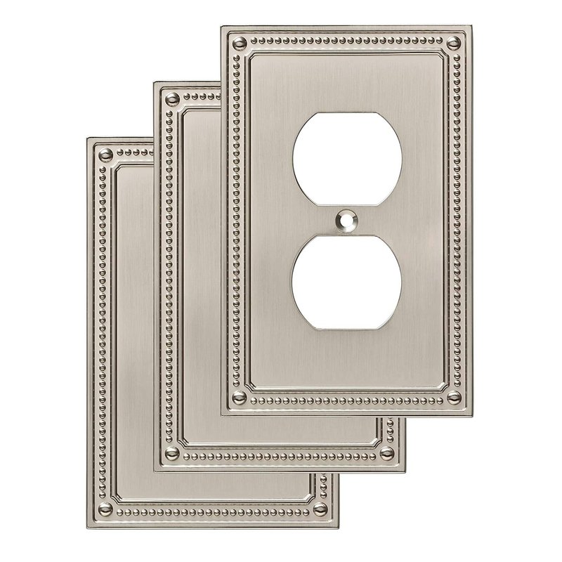 Franklin Brass Classic Beaded Wall Plate, Satin Nickel Single Duplex Outlet Cover, 3-Pack, W35059V-SN-C