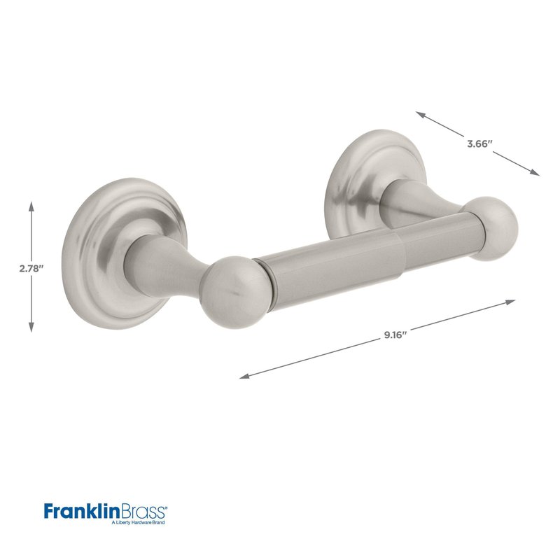 Franklin Brass Jamestown (1-Pack) Toilet Paper Holder Brushed Nickel Tissue Roll Holder for Bathroom Organization and Storage Spring-Loaded Toilet Tissue Holder Wall Bathroom Accessories 9008SN