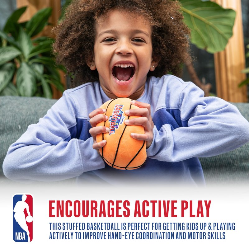 - ENCOURAGES ACTIVE PLAY: This stuffed basketball is perfect for getting kids up and playing actively to improve hand-eye coordination and motor skills whether they are inside the house or out in the backyard