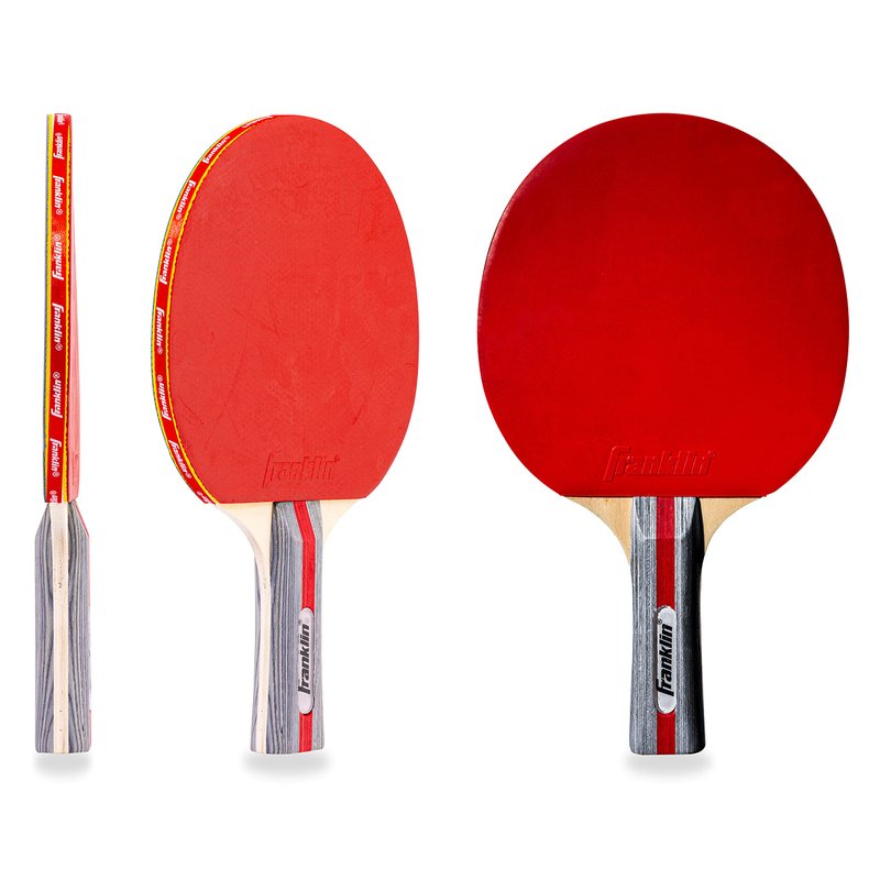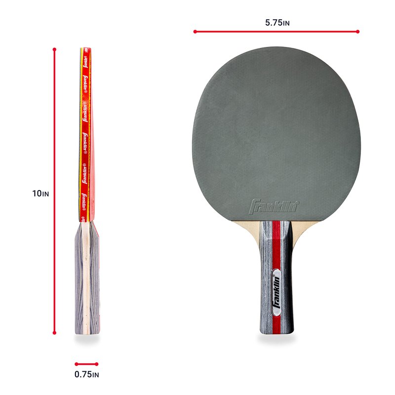 Franklin Sports Ping Pong Paddle - Performance Table Tennis Racket - Wooden Pro Style Paddle with Rubber Surface - Red + Gray