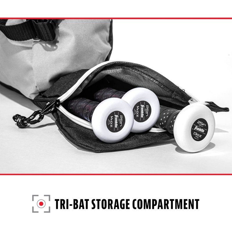 Franklin Sports Youth Baseball Bat Bag - Teeball, Softball, Baseball Equipment Bag - Holds (3) Bats, Helmet, Cleats + More - Includes Fence Hook - Gray