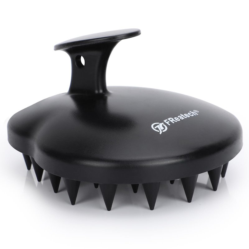 FREATECH 100% Silicone Hair Scalp Massager Shampoo Brush for Scalp Care and Hair Growth, Waterproof Shower Hair Scrubber Scalp Exfoliator for Dandruff and Buildup, Sturdy and Hygienic, Black
