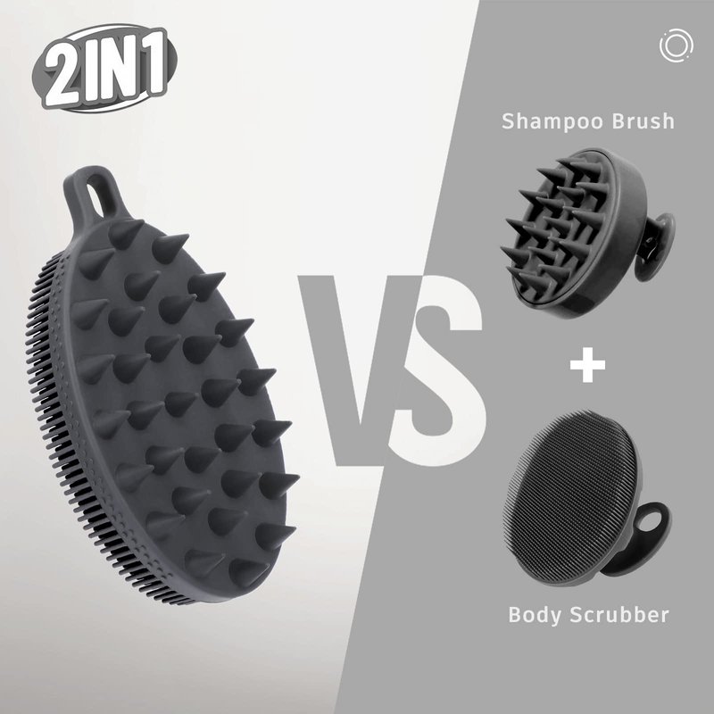 - 【2-IN-1 Bath & Shampoo Brush】 This double-sided brush is designed for bathing and shampooing, with long bristles on one side for daily gentle scrubbing and the spiked side for scalp exfoliation and massage. Get a dual-purpose brush for just one price.
