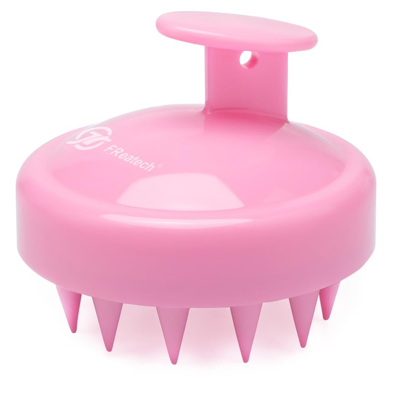 FREATECH Scalp Massager Hair Growth, Scalp Scrubber with Soft Silicone Bristles for Dandruff and Hair Care, Shampoo Brush Hair Massager Scalp Exfoliator for Wet & Dry, Long Curly Thick Hair, Pink