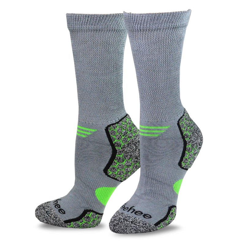 TeeHee Viscose from Bamboo Cushion Crew Diabetic Socks for Men 3-Pairs Colorful Diabetic Socks 10-13 Large. Relaxed top non-binding loose diabetic socks. Our socks are engineered to address diabetes-related symptoms, leg fatigue, swelling, and dry skin. They are constructed with yarns and comfort features that help reduce foot irritation and pressure on the legs. Black, White, Grey, Khaki, Navy, Tan, Bottom Grey, Colorful Diabetic Socks, Bright Color, Dark Color. Sizing Guidelines: Sock Size 9-11 (Shoe Size 6-9) Medium, Sock Size 10-13 (Shoe Size 7-10) Large. Contents: 80% Viscose from Bamboo, 17% Polyester, 3% Spandex.