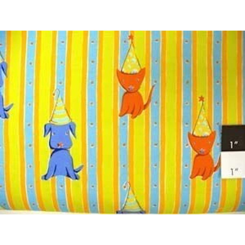 Free Spirit Felicity Miller Cat & Dog Stripe Orange Cotton Fabric by The Yard