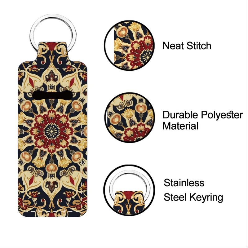 FREEBLOSS 2 Pack Lip Balm Holder Keychain Vintage Mandala Pattern Chapstick Holders Lip Gloss Holder Keychain Lipstick Sleeve Keychain Chapstick Sleeve Holder for Women Friends Gift