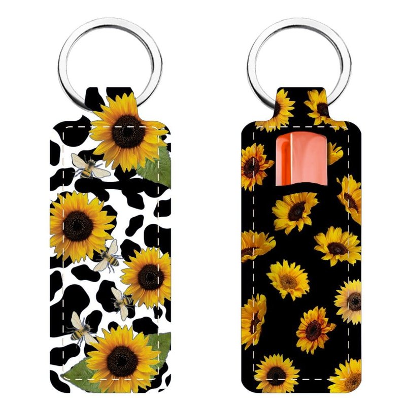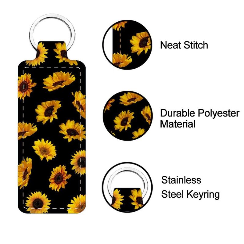 FREEBLOSS 2Pcs Chapstick Holder Keychain 1.5x3.8'' Lip Balm Holder Keychain Lightweight Lipstick Sleeve Pouch with Sunflowers Pattern for Women Girls