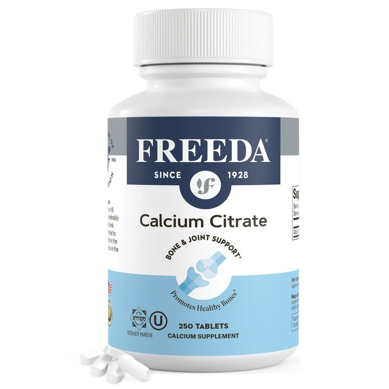 Freeda Calcium Citrate - Kosher Vegan Calcium Supplement for Women & Men - Bone Health & Joint Support - Calcium 1000mg per Serving - Calcium Citrate 1000mg Tablets Calcium Without Vitamin D (250 Ct)