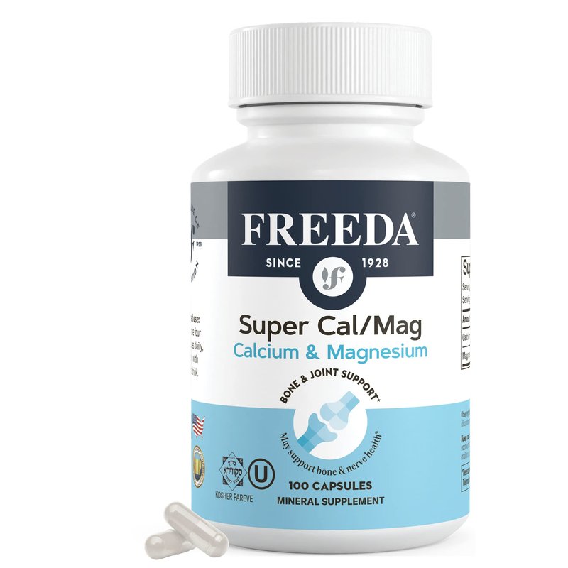 Freeda Super Cal/Mag Calcium Magnesium - Kosher Magnesium and Calcium Supplements for Women & Men - CalMag Bone & Joint Support - Vegetarian/Vegan Calcium and Magnesium Supplement - (100 Capsules)