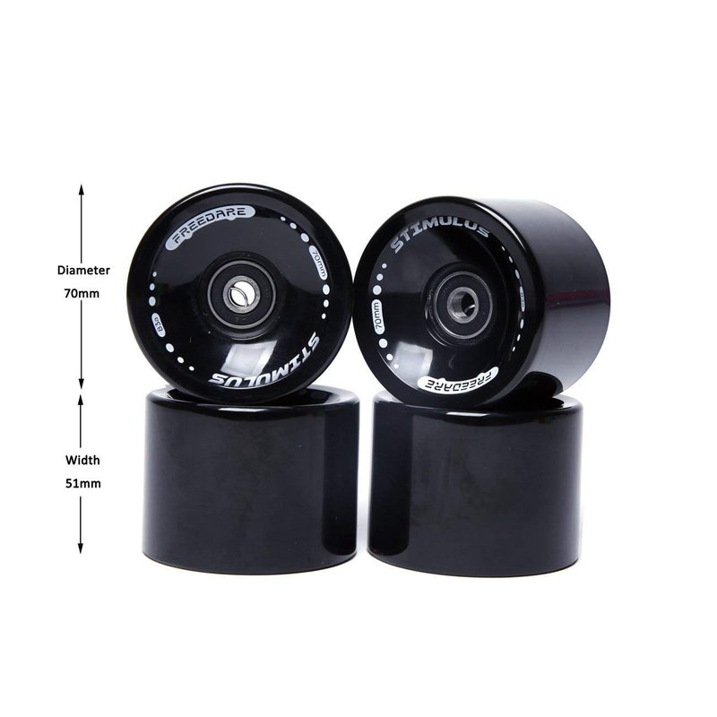FREEDARE 70mm Longboard Wheels with ABEC-7 Bearings and Spacers(Black,Set of 4)