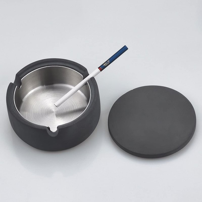 FREELOVE GUOJ Concrete Cigarette Ashtray with Lid & Stainless Steel Liner, Windproof Cement Ash Tray for Indoor or Outdoor Use, Patio, Office & Home(Dark Grey G)