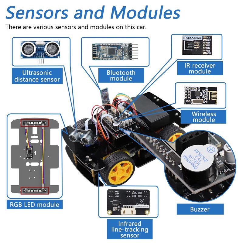 FREENOVE 4WD Car Kit with RF Remote (Compatible with Arduino IDE), Line Tracking, Obstacle Avoidance, Ultrasonic Sensor, IR Wireless Remote Control Servo