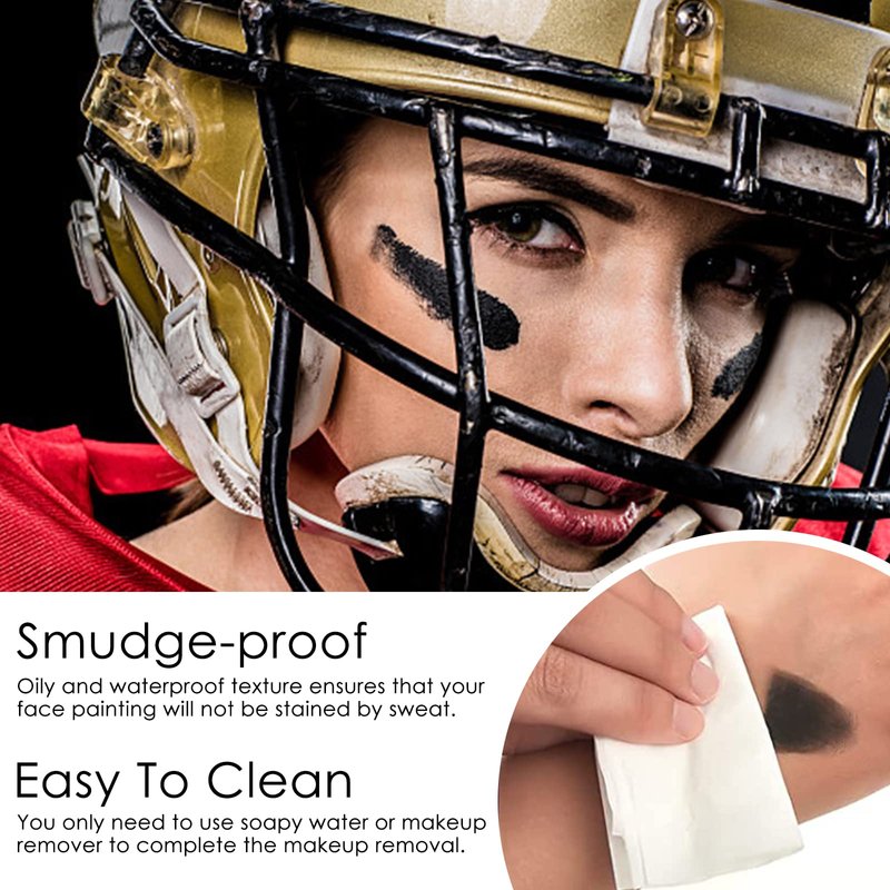 - 【Wide Occasion Usage 】Cream face paint sticks can be applied in Halloween/costume parties for creating clown/vampire/witch image, but also the black face paint can be used at baseball/ football/ softball /lacrosse and each sports games for anti sun-glare. Value for money.