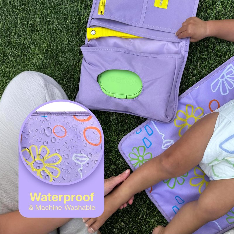 Portable Diaper Changing Pad | Waterproof Baby Changing Pad With Stylish Wet Wipes Pouch | Quick Access, Foldable Baby Changing Mat For Diaper Bag Essentials, On The Go Baby Travel Gear by Freestyle