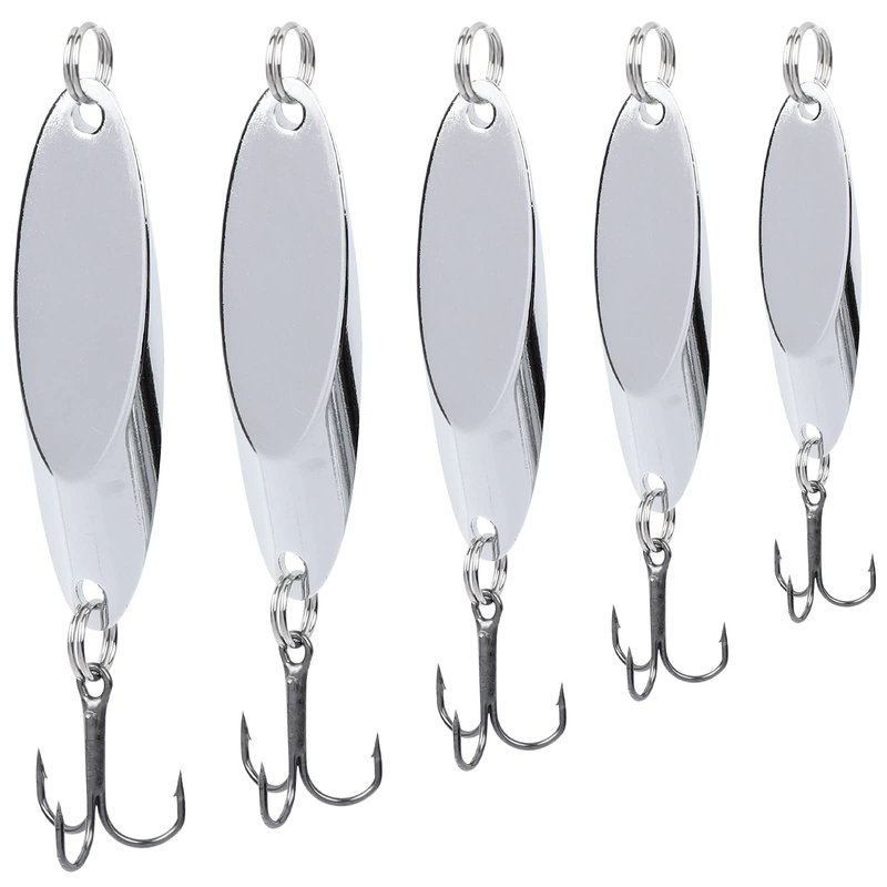 FREGITO 5pcs Fishing Lures Fishing Spoons, Trout Lures Bass Lures Hard Metal Spinner Baits for Salmon Bass Trout (Silver-A)