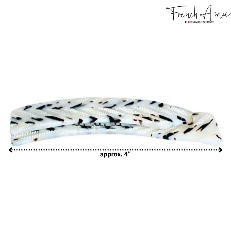 French Amie Elongated Curve Black and White Handmade 4 inch Celluloid Acetate Banana Hair Clip for Ponytail Women Hair Accessories, Made in France
