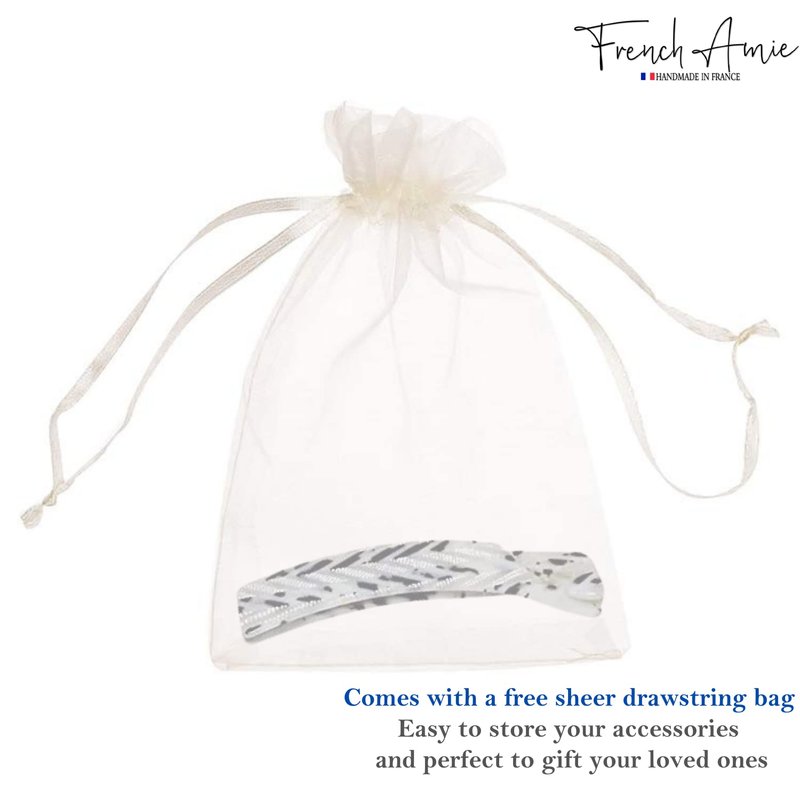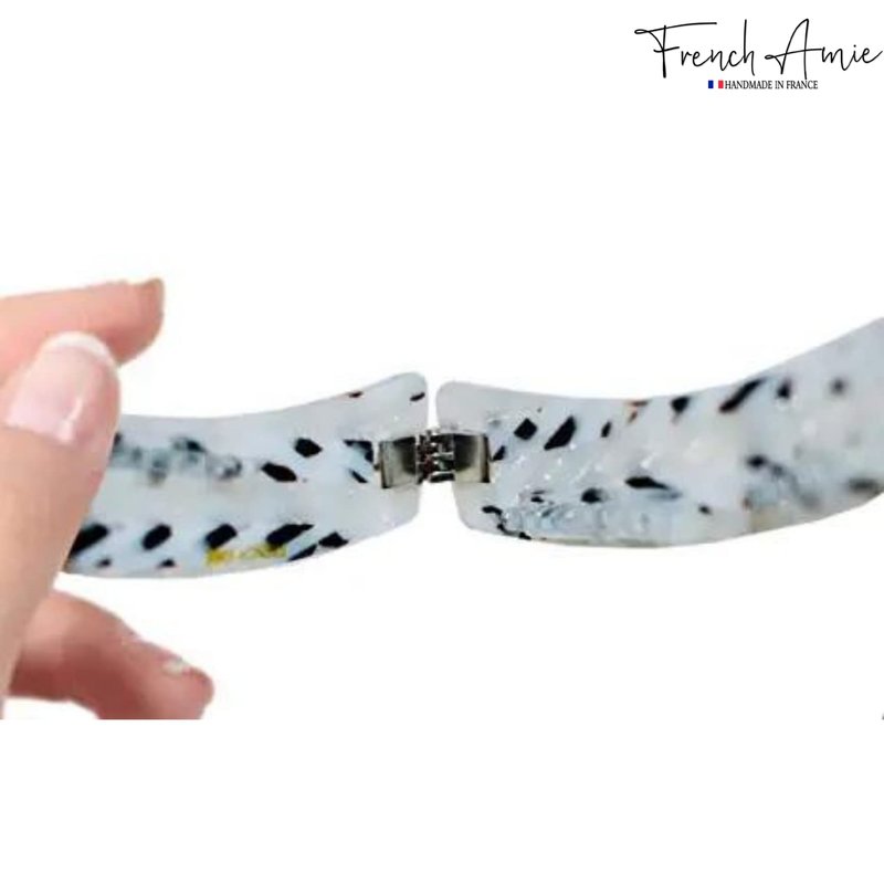 French Amie hair accessories are made from nature- friendly cellulose acetate, perfectly polished for a splendid finish, distinctive patterns, and designs. The victory style black and white banana clip is a versatile hair accessory that helps you create a tangle-free look with a reassuring grip.