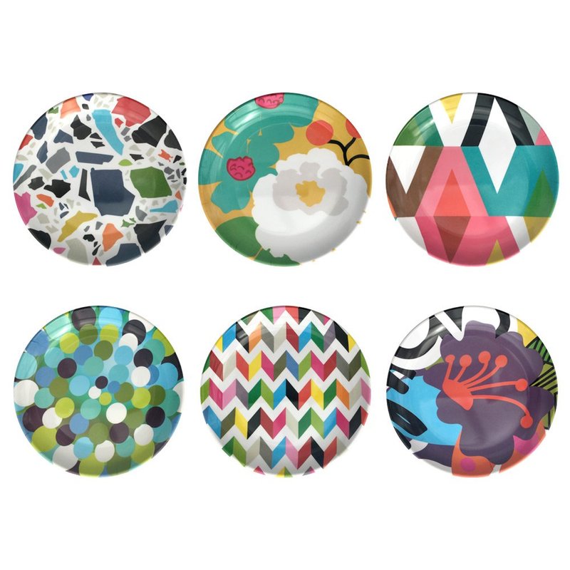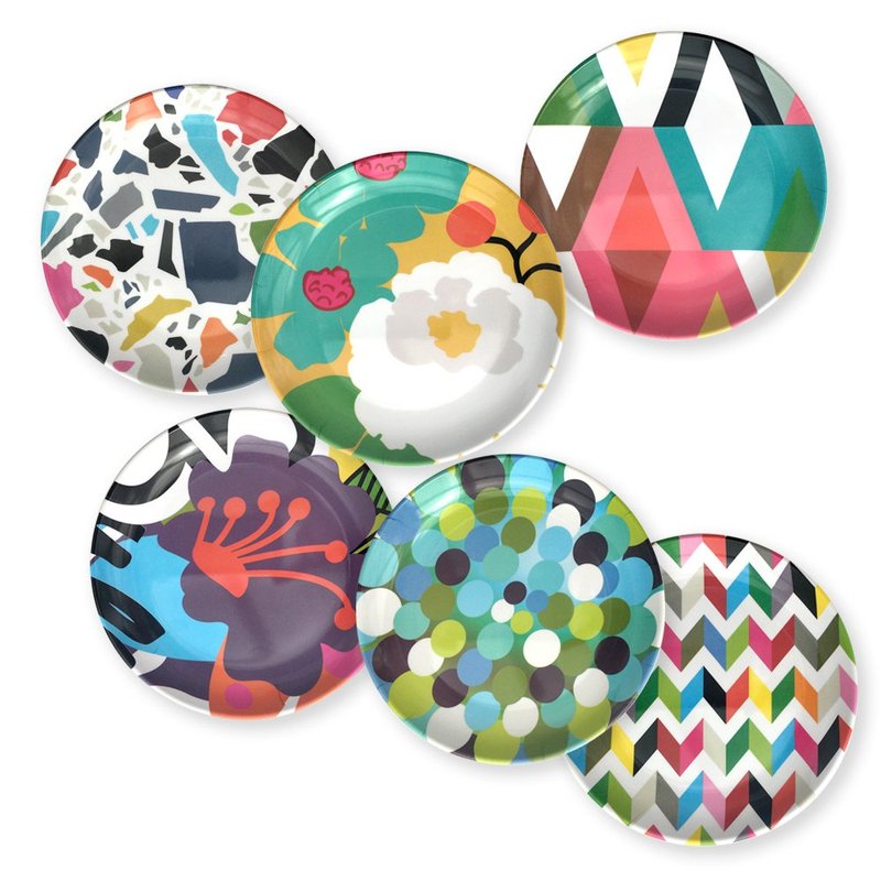 - Set of six appetizer and dessert plates in assorted patterns