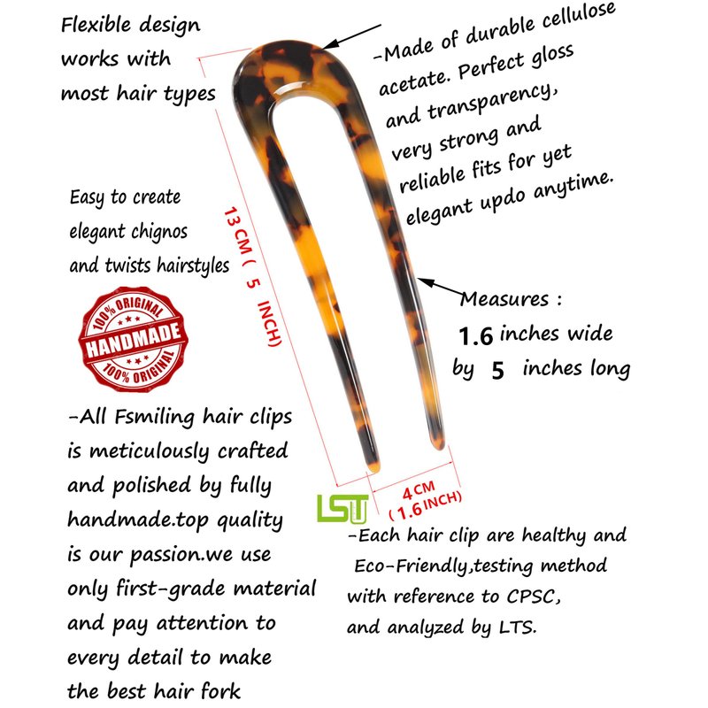 - WOMEN HAIR FORK MATERIA: These french hair pin are made of quality celluloid acetate,smooth and durable,flexible and strong,a non-petroleum based plastic derived from plants that has been found to create less static in hair;these french hair fork do not easy to break.Comfortable light hold without damage hair.