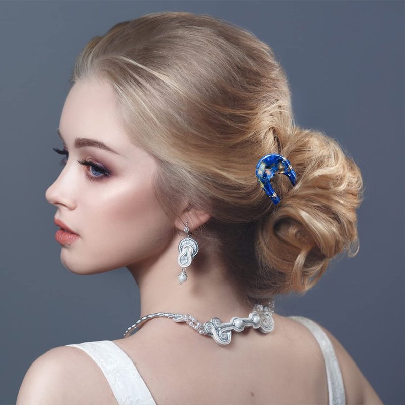 The u shaped hairpin set is a must-have hair accessory for women and girls who love to style their hair. With a tortoise shell finish, these 2-prong french style hairpins are perfect for creating updo buns and chignons. Made from cellulose acetate, they are long, large and sturdy. This set of 2 decorative hairpins is a great addition to any fashion-forward woman's collection.