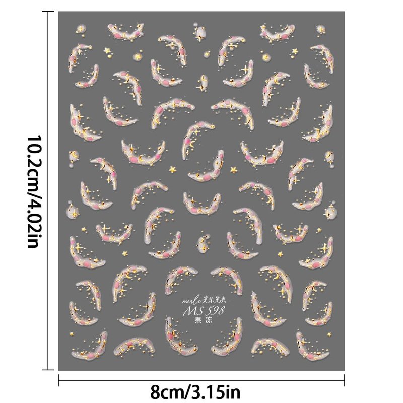 - 【Cute Nail Stickers For Nail Art】The jelly star moon strips nail art decals are suitable for home use and nail salon, not only decorate your nails, but also anything you want to decorate, such as: laptops, invitations, cell phones, etc.