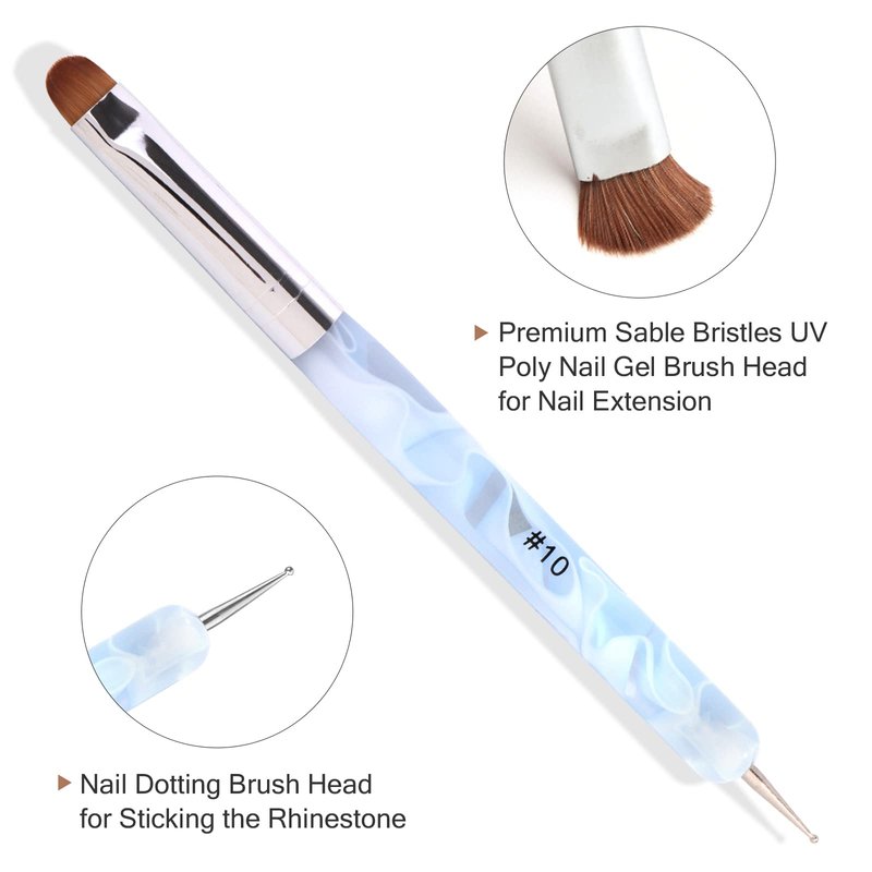 French Manicure Brush -Two Way Nail Art Brush with Dotting Manicure Tool for Manicure Cuticle Clean Up Nail Art Design- Professional Nail Salon Quality Brush, Nail Dotting Pen (10#, Blue)