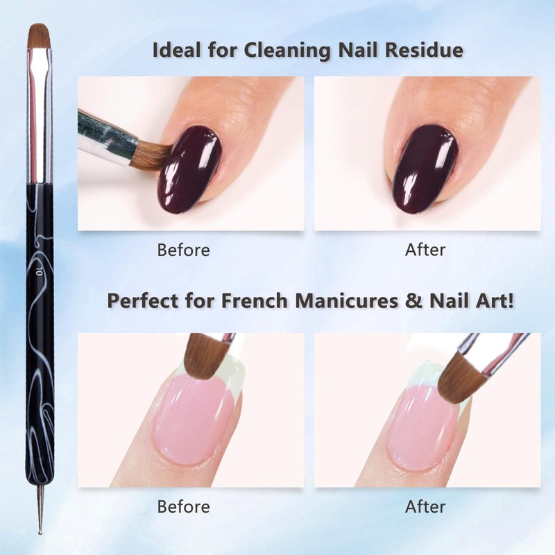 - [Muti-Function] - This Crimped French Brushes are Professional Acrylic Gel French Manicure, You Can Use the Clean up Brushes to Clean up Around the Nails After Creating French Nail Art. Keep Your Smile Lines Crisp and Your Fingers Clean for Gorgeous French Manicures. Use the Dotting Tool to Create Dots, Swirls, Or a Marble Effect. Mix Colors, Pick up Glitters and Rhinestones, Create Nail Art Designs.