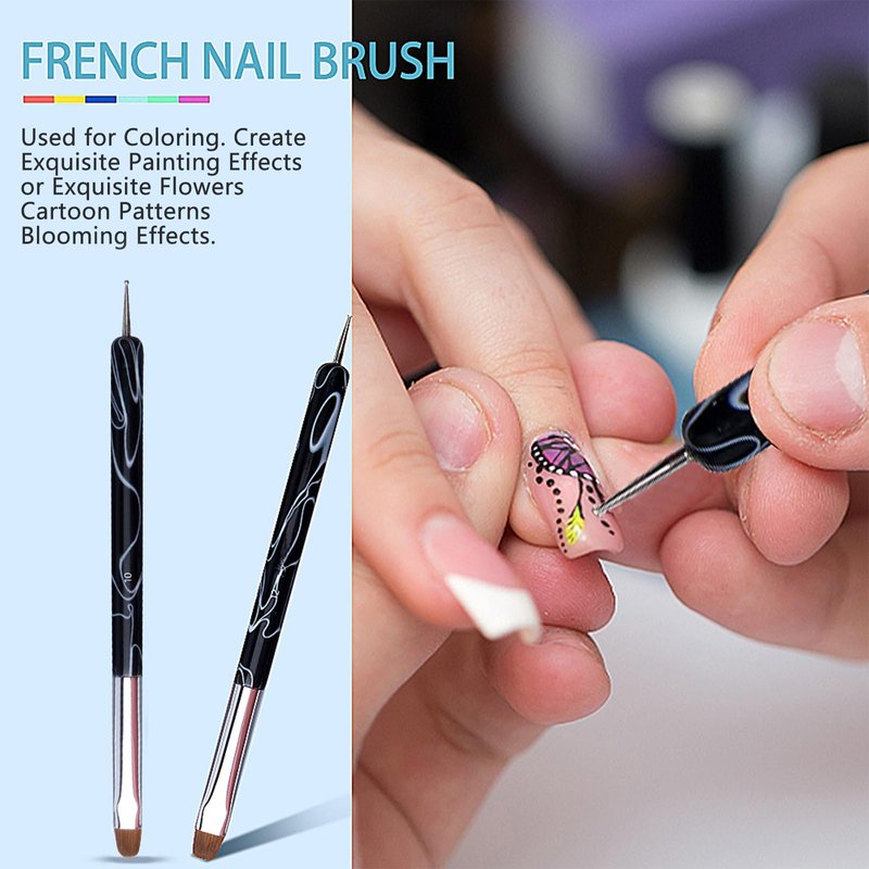 - [French Nail Brush] - 2 Way French Gel Acrylic Nail Art Brushes with Dotting Pen. This Nail Art Pen is Suitable for French Manicure, Clean Up, Drawing Large Patterns, Leaves, Petals, Etc.