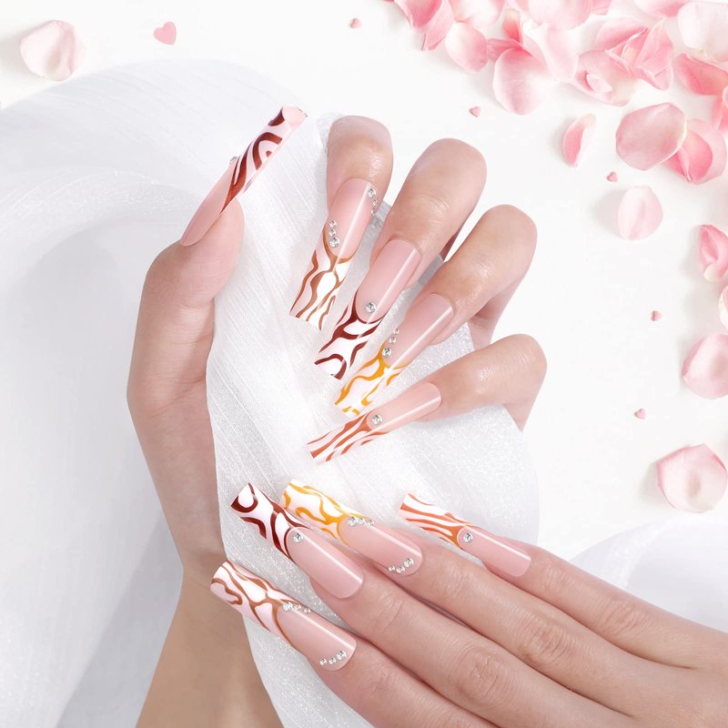 - Different Sizes: Our long false stick on nails have many different sizes. You can choose the most suitable fake nails for your own according to the size and width of your nails. Easy to Apply: Our press-on nails come ready to wear, with no nail polish required and no drying time. Including 24 x fake nails, 1 x nail glue, and 1 x nail file. Convenient and worth to get it.