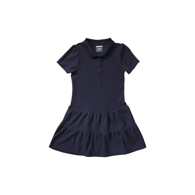 French Toast girls Ruffle Pique Polo School Uniform Dress, Navy, 6-6X US