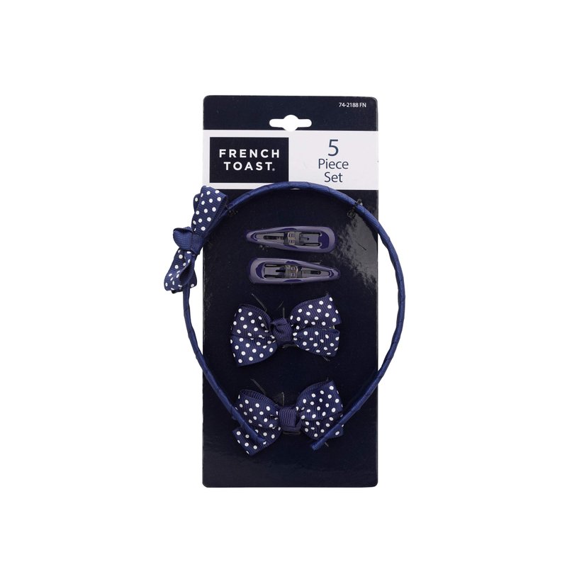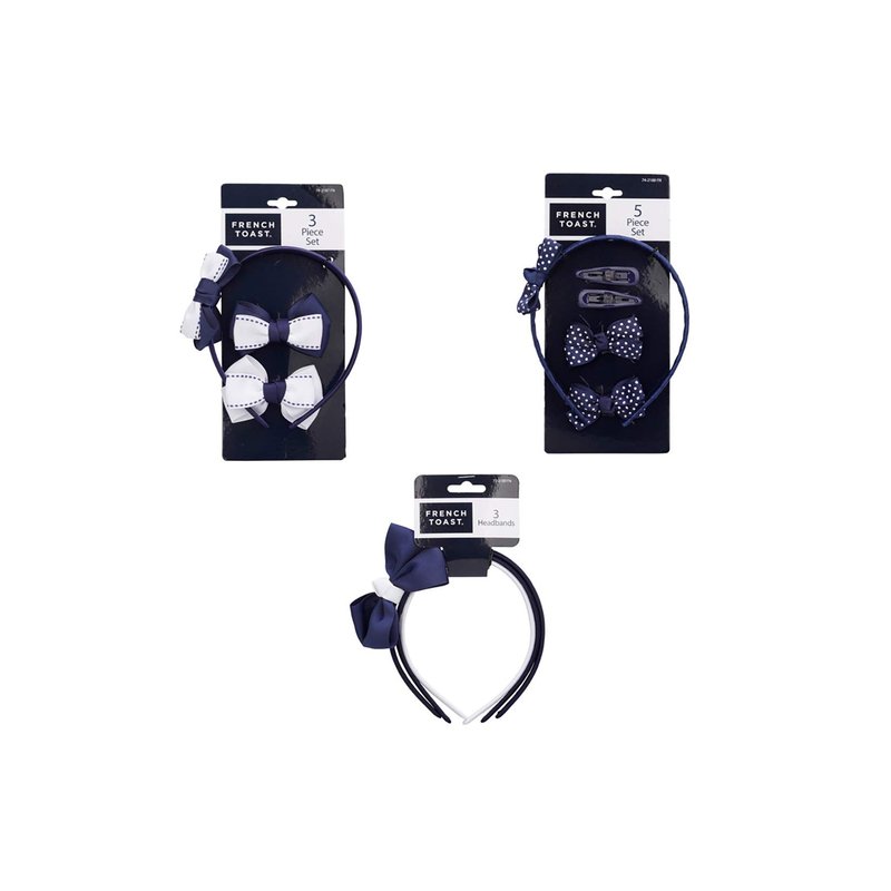 - Create different looks with French Toast hair accessories that includes 5 headbands (3 bow and 2 plain) and 6 hair clips (4 bows and two plain)