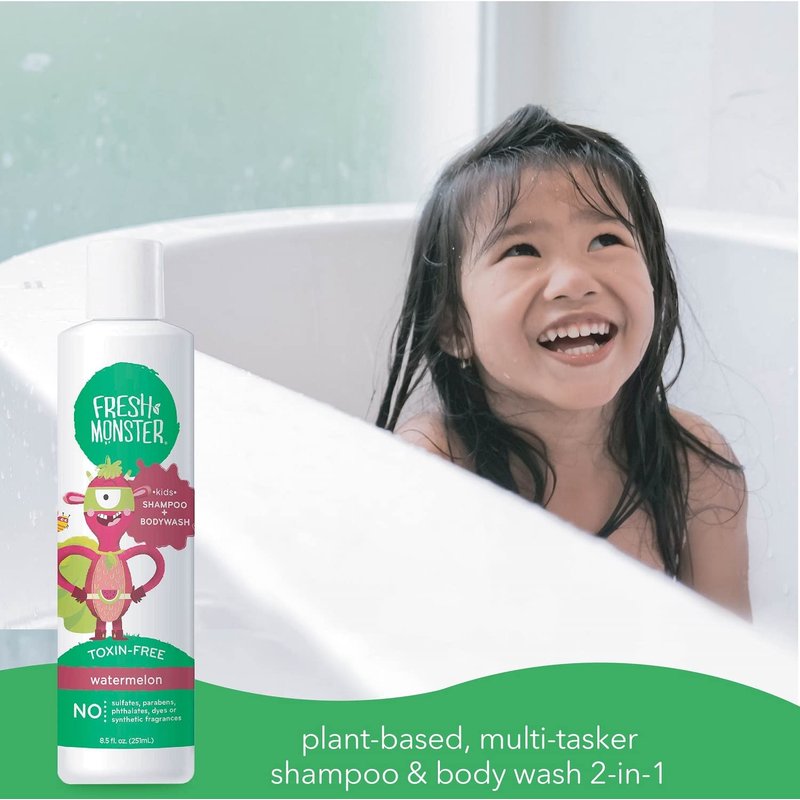 - GENTLE & TEAR FREE: Fresh Monster 2-In-1 Kids Shampoo & Body Wash is a 100% toxin-free, plant based, gentle body wash and shampoo for kids. This tear free, hypoallergenic body wash & shampoo cleans kids from head to toe, & is safe for even the most sensitive skin.