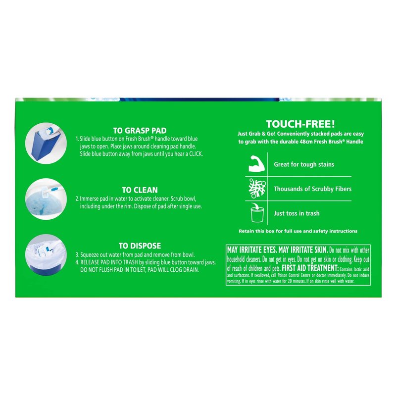 Get a handle on the messes of your toilet bowl with Scrubbing Bubbles Fresh Brush Toilet Cleaning System. Fresh Brush scrubs away stains and cleans your toilet and leaves it smelling fresh. Instead of keeping your dirty toilet bowl brush, with Fresh Brush, you just throw your dirty disposable pad away when you’re done. It’s the only toilet bowl cleaning system with disposable pads. After cleaning, use Scrubbing Bubbles Fresh Gel Toilet Cleaning Stamp to keep your toilet smelling fresh.