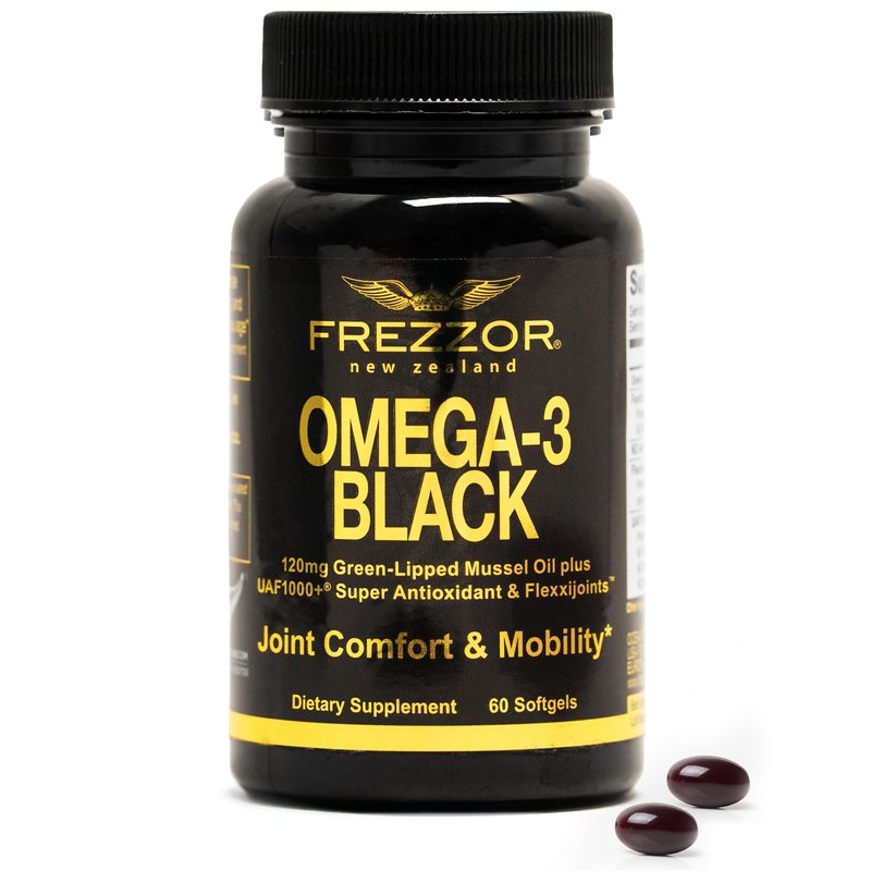 - JOINT COMFORT: Independently tested and proven to be the most potent joint health supplement in its class. In recent a scientific study, FREZZOR OMEGA-3 BLACK Capsules was shown to be 53 TIMES more EFFECTIVE than the other mussel oil competitors or other essential fatty acids supplements.