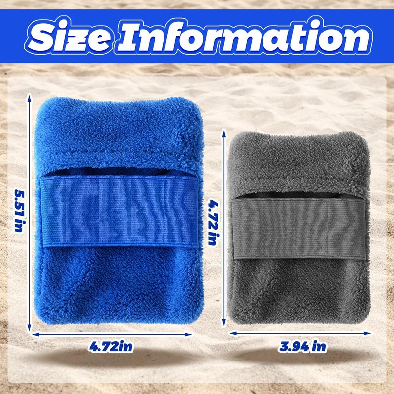 Features: The powder cleaner is made with a quality velvet material, ensures a comfort touch against the skin, making it completely safe for children. The beach sand remover available in gray and blue, are designed with an efficient cleaning, helping you to dust off sand particles effectively. Specifications: Material: velvet materialColor: gray and blueSize 1: about 4.72 x 3.94 inches/ 12 x 10 cmSize 2: about 5.51 x 4.72 inches/ 14 x 12 cmQuantity: 4 piecesPackage includes: 4 x Sand remover for beach(2 colors) (2 sizes)Notes: Manual measurement, please allow slight errors on size. The color may exist a slight difference due to different screen displays.