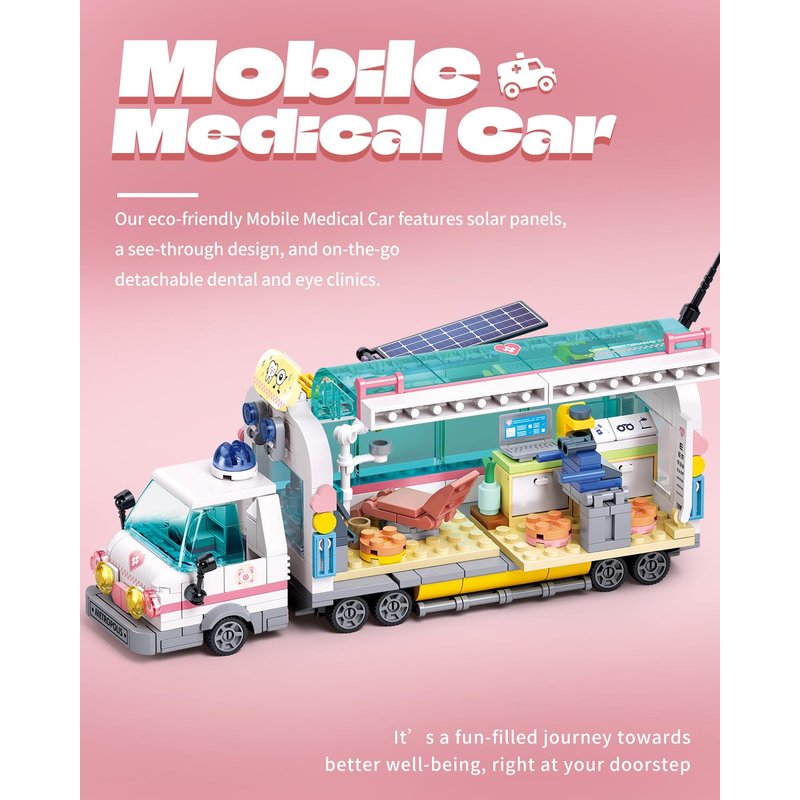 Discover the endless possibilities with our Mobile Medical Car, featuring solar panels for eco-friendly play, a see-through design for interactive learning, and detachable dental and eye clinics for specialized role-play.