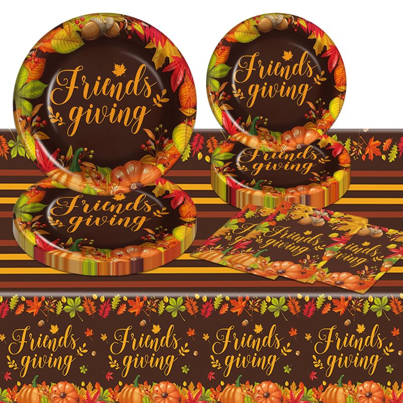 Friendsgiving Plates and Napkins Party Supplies, Friendsgiving Decorations Tableware Include Friendsgiving Tablecloth, Friendsgiving Plates and Napkins, Serve 20